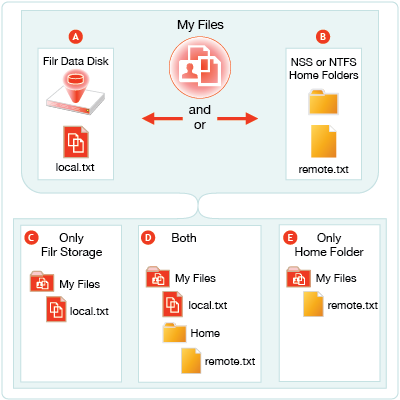 If you have enabled personal storage for users, and those users also have home directories associated with them in the identity store, they see what is stored in the Filr data store and a folder named Home under My Files. The Home folder provides a distinction between files and folders in the Filr data store and those in Home directories on the file server.