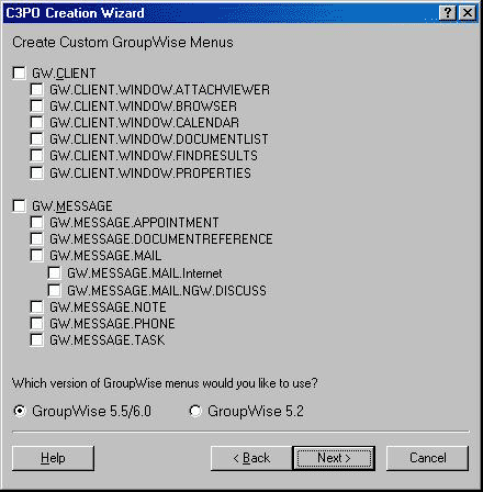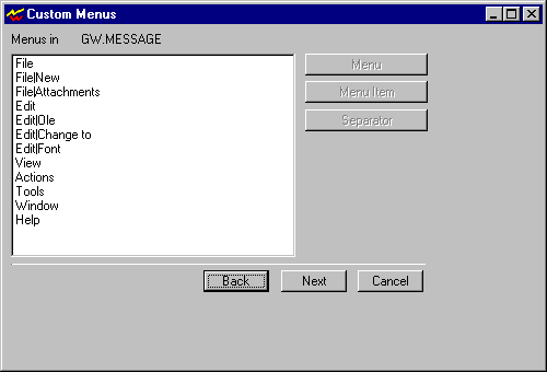 If you selected I want to customize the GroupWise menus, the following dialog box is displayed.