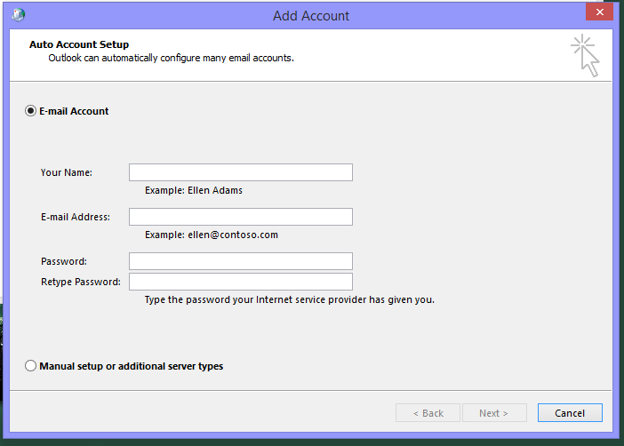 Select Outlook.com or Exchange ActiveSync compatible service, then click Next.