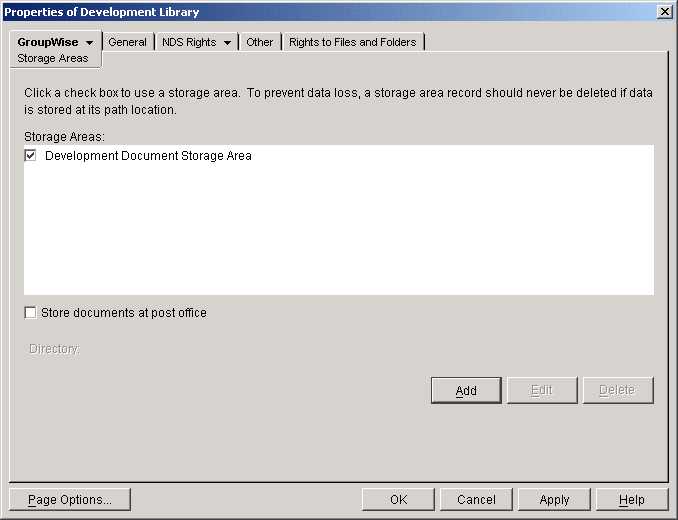 Click GroupWise > Storage Areas to display the Storage Areas page.