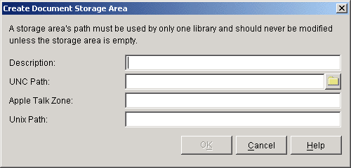 Typically, the initial document storage area for a library is set up when the library is created. Thereafter, you can create additional document storage areas as the library grows. You can move a document storage area to a location where more storage is available. You can delete a document storage area if it is no longer used.