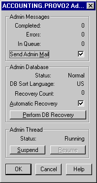 The Admin Database box provides the following information about the post office database (wphost.db):