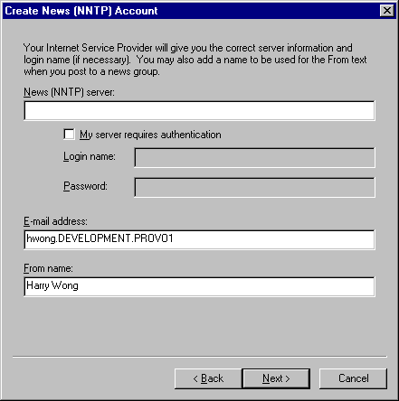 Type the name of the News (NNTP) server.