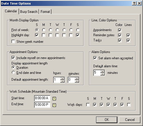 In Date Time Options, you can specify a default that automatically sets an alarm each time you accept an appointment. Click Tools, click Options, double-click Date & Time, then select Set Alarm When Accepted.