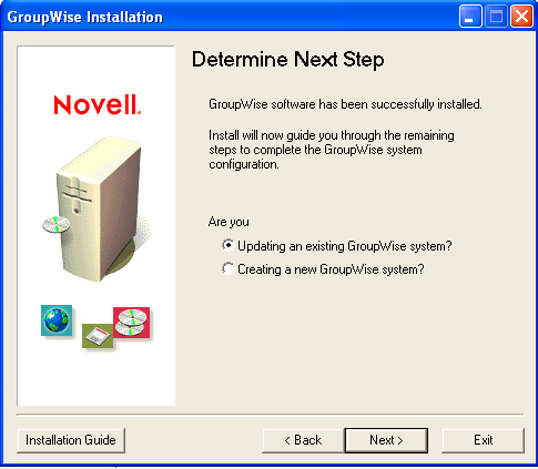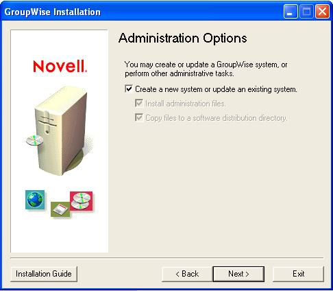 When you have provided this information, the Installation Advisor is ready to install the GroupWise administrative software.