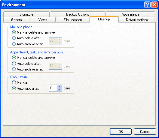 When you move an item to a folder, it is not archived. Items in all folders are affected by the Clean Up options you specify in Environment Options, and by any archiving or cleanup options your administrator specifies.