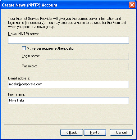 Type the name of the News (NNTP) server.