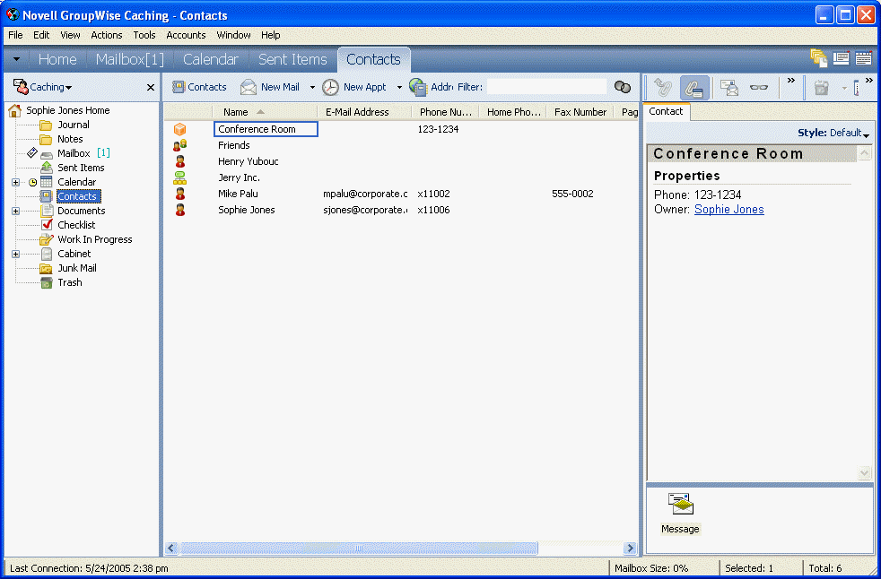 Use the Contacts folder to view, update, delete, and add information to the contacts in your address book. For more information, see Section 7.3, Managing Contacts Through Your Mailbox.