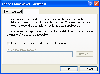 The Executable tab enables users to set the DualExe= line in the gwappint.inf file.