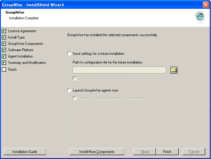 The GroupWise Installation program starts the Agent Configuration program for you.