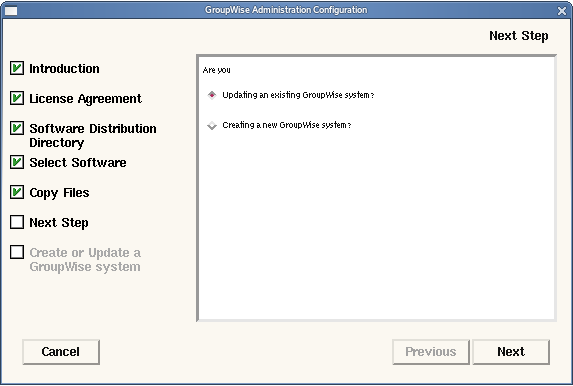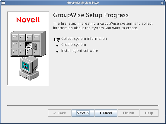 You should have already reviewed Section 3.2, Planning a Basic GroupWise System and filled out the summary sheet. The following sections step you through the GroupWise Installation program for creating a new GroupWise system.