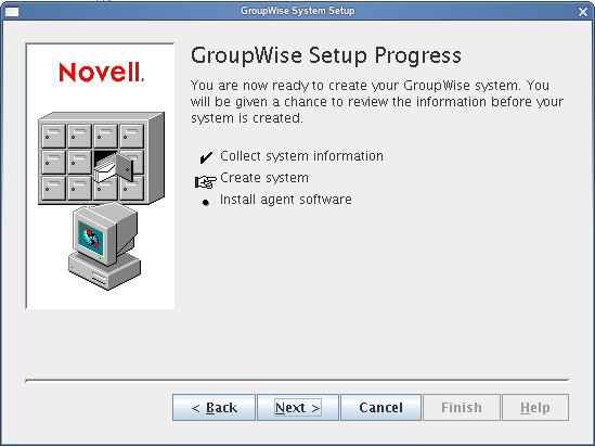 At this point, the Installation program has created eDirectory objects and network server directories associated with your GroupWise system. You now need to install and start the MTA and POA on your Linux server.
