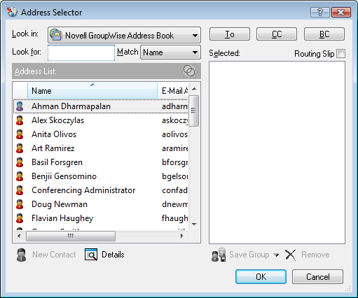 The GroupWise Address Book includes resources defined by your GroupWise administrator. You can add a personal resource to the Frequent Contacts folder or another personal Contacts folder.