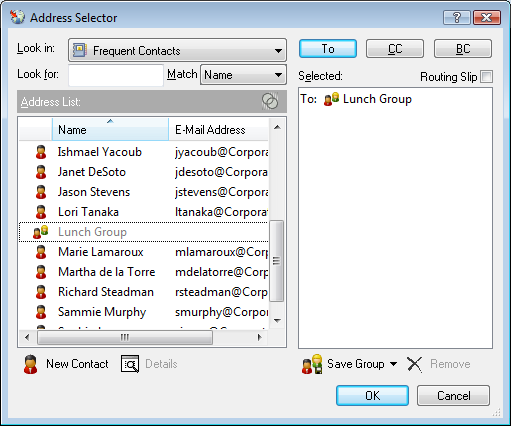 You can also create and save a personal group from the Address Selector when you are addressing a message or other item: