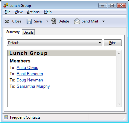 Summary: Select to summarize contact information under each contact name.
