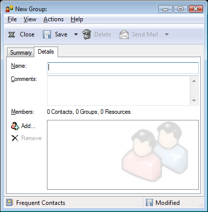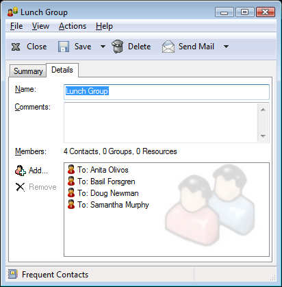 A personal group is a group created by you. For example, if you often send an appointment to your work group, you can include each co-worker’s address or name and a meeting place (a resource) in a personal group.
