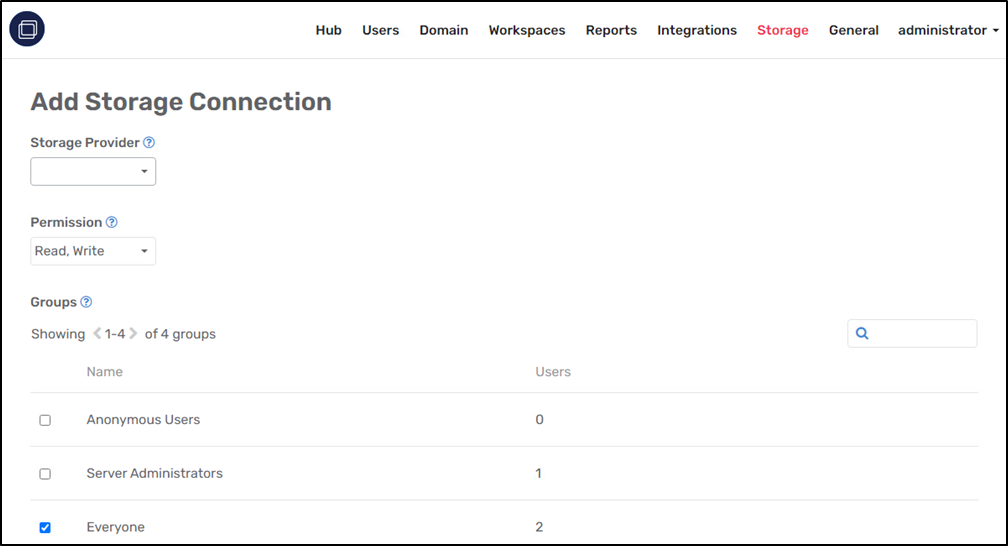 New! Storage Connections can now be created globally by administrators and made available to select user groups, allowing users to access shared files with no additional setup.