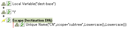 The Escape Destination DN token takes the value in Unique Name and sets it to the format for the destination DN.