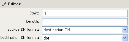 If start and length are set to the default values {0,-1}, then the entire DN is used; otherwise only the portion of the DN specified by start and length is used.