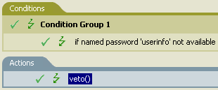 The example indicates that if the userinfo named password is not available, then the event is vetoed.