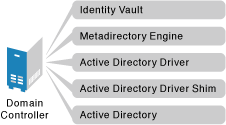 You can install the Identity Vault, the Metadirectory engine, and the driver on a separate computer from the Active Directory domain controller. This configuration leaves the domain controller free of any Identity Manager software.