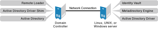 The Active Directory driver shim must run on one of the supported Windows platforms. However, you don’t need to install the Metadirectory engine on this same machine. Using a Remote Loader, you can separate the engine and the driver shim, allowing you to balance the load on different machines or accommodate corporate directives.