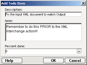 Developing Web Services and XML-integration applications can be a very complex undertaking. Integration Manager provides the ability for you to maintain a Todo list to help you organize and manage the many tasks associated with application development.