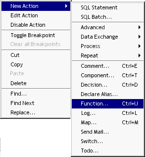 From the Action menu, select New Action, then Function, or press Ctrl-U. The Function dialog appears.