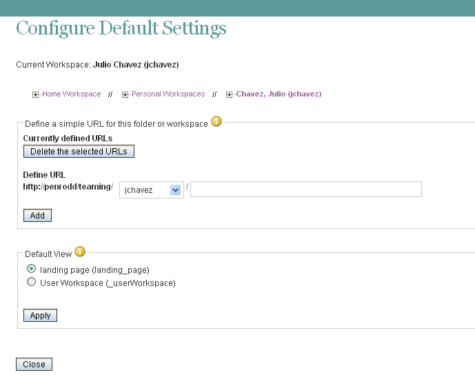 If you are a Teaming administrator and you want to enable landing page creation for personal workspaces, see Enabling Users to Create Landing Pages on Personal Workspaces