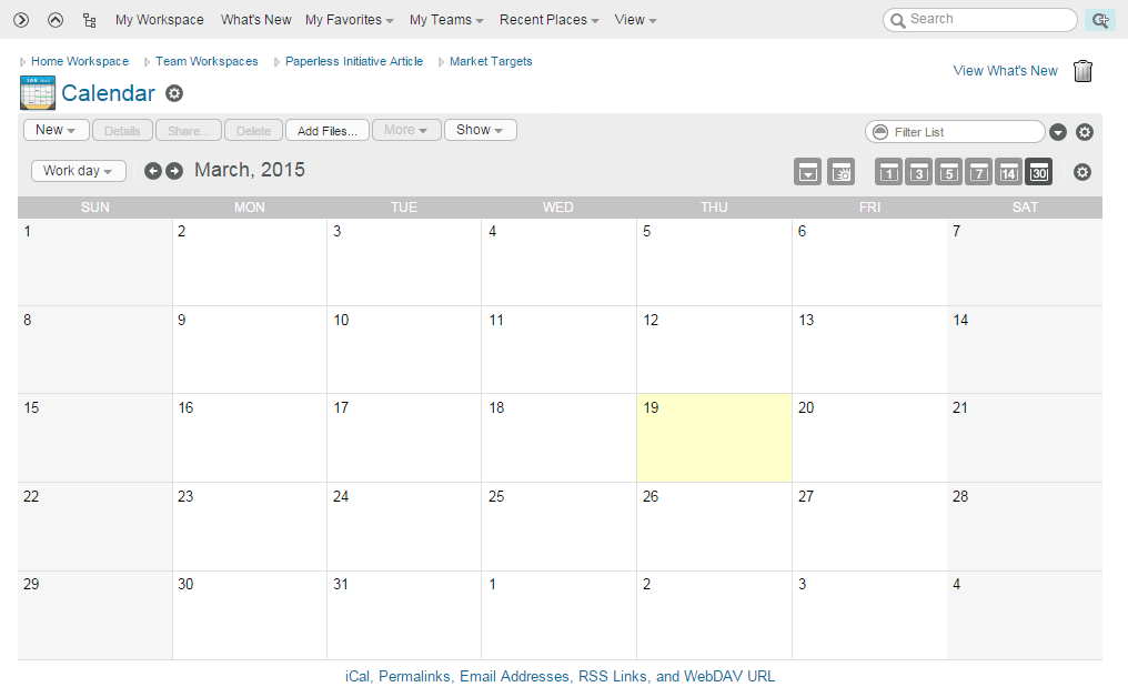 For example, the Team Workspaces template is used when any team workspace is created. By default, the access control settings for the Team Workspaces template specify that only team members are able to view the team workspace. However, if you want to run a more relaxed Vibe site and allow all Vibe users to view any team workspace, you can simply modify the access control settings for the Team Workspaces template.