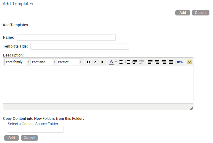 Templates in Kablink Vibe are a powerful way to create consistent custom folders and workspaces. If you are not satisfied with the way default workspaces and folders behave, you can either modify the current templates, or create new templates.