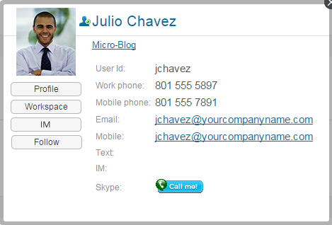 The Presence icon is displayed next to a user’s name wherever the user has posted or commented on a Vibe entry. When you click a user’s presence icon, the Profile Quick View is displayed.