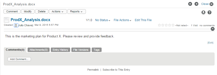 The view for a File entry is what users see after the File entry is created. It looks like this: