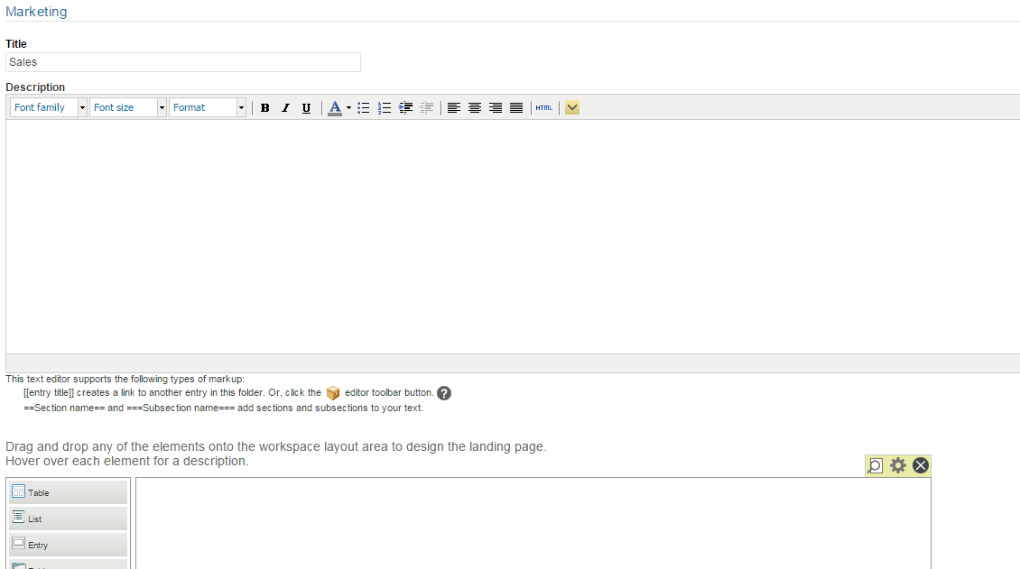 The workspace view is what users see when they access the workspace. Each view must have a corresponding form. The form is how workspace administrators enter data, which is then displayed in the workspace view. Forms contain a series of fields, presented in a specific order and layout that you define.
