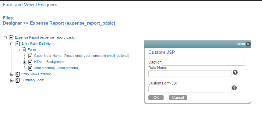 Custom Form JSP: Specify the file name of the custom JSP file.