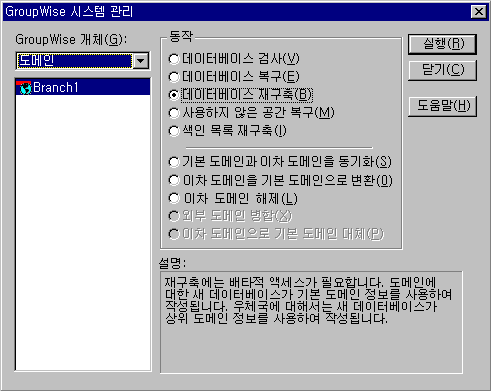 µµ¸ÞÀÎ µ¥ÀÌÅͺ£À̽ºÀÇ ¹°¸®Àû ¹®Á¦Á¡À» ÇØ°áÇÏ°í ¸ðµç »ç¿ëÀÚ¿Í °³Ã¼ Á¤º¸¸¦ ¾÷µ¥ÀÌÆ®ÇÏ·Á¸é ¾÷µ¥ÀÌÆ®µÈ ½Ã½ºÅÛ¿¡¼ GroupWise 5.5¿Í GroupWise 4.1 µµ¸ÞÀÎ µ¥ÀÌÅͺ£À̽º¸¦ ¸ðµÎ À籸ÃàÇØ¾ß ÇÑ´Ù.