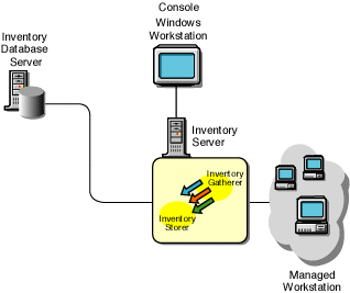 In another type of inventory configuration in ZENworks 2, there is more than one inventory server. These inventory servers are connected to one Inventory database server. The scenario is illustrated in the following figure: