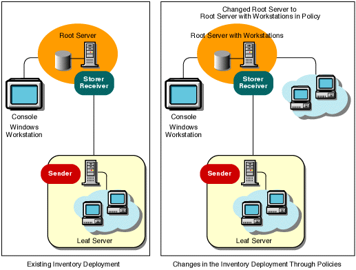 When you install ZfD, you assign specific roles to the server based on your inventory deployment. For example, if the deployment plan identifies three servers, such as a Root Server, an Intermediate Server with Database, and a Leaf Server for inventory deployment, you install Workstation Inventory on these servers, and choose the role for the server. Later, if you want to make changes in the inventory deployment, such as attaching the workstations to the existing Root Server, you need to change the role of the Inventory Service object from Root Server to Root Server with Workstations. Additionally, depending on the new role, there are some policies you need to configure.