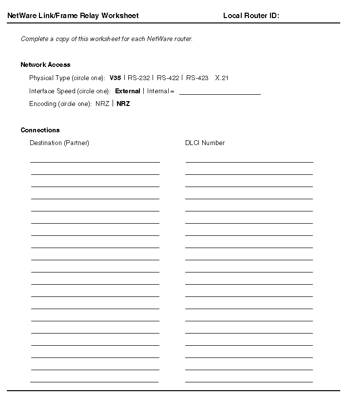 Figure 7 shows a template of the NetWare Link/Frame Relay configuration worksheet.