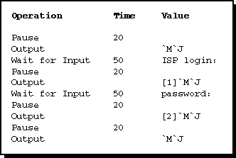 IMPORTANT: Ensure that you have a sequence of interactions for communicating with the online service provider. This information might be available from your the online service provider or you can gather this information by using a workstation terminal program or dialer software to call the online service provider and capture the input and output sequences.