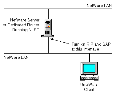 If one or more UnixWare servers or clients are on a LAN connected to one of the network interfaces and the users are running the internal UNIX® NetWare client instead of the DOS NetWare client, you must enable RIP and SAP explicitly on the interface connected to the LAN.