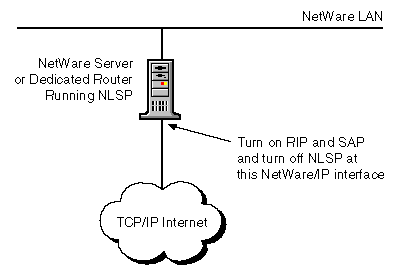 If you install NLSP software on a server that is running NetWare/IP, you must enable RIP and SAP and disable NLSP on the interface to which IPX is bound.