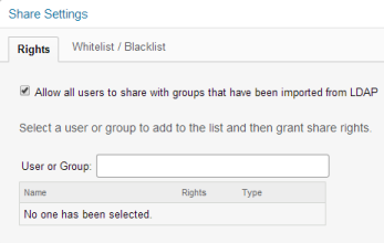 If you select this option, groups that were imported from the LDAP directory are displayed in the field when users are sharing an item (as described in Sharing Files and Folders