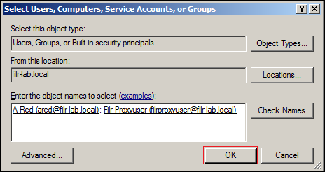 For example, for the Dev folder, type ared;filrproxyuser, then click to validate your entries.