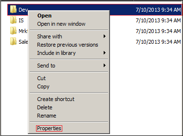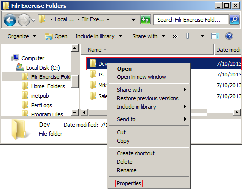 In Windows Explorer, right-click one of the four folders in Table 5-1, starting with Dev, then click .