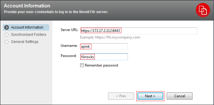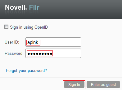 In the field, type https://Filr-appliance-IP-address:8443, type : apink and user apink’s , then click .