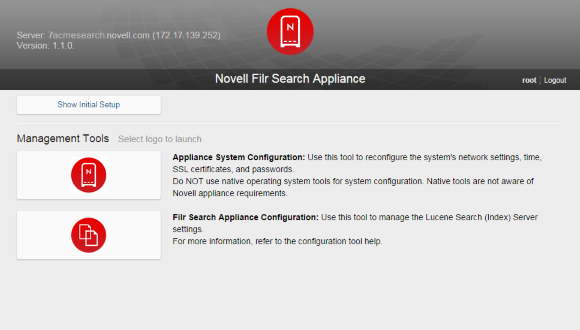 After you have downloaded the search index appliance, configured the virtual environment, and powered on the appliance, click the tab.