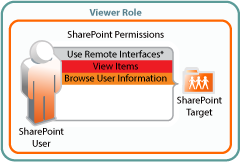 To view files and folders in SharePoint document libraries, SharePoint users must have the Browse Directories, Browse User Information, Use Remote Interfaces*, and View Items permissions in the document libraries. |