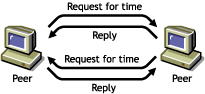 In this mode, there are two time consumers or time providers. Both of them can request the time from each other and respond to each other. They are at the same level and therefore, known as peers.