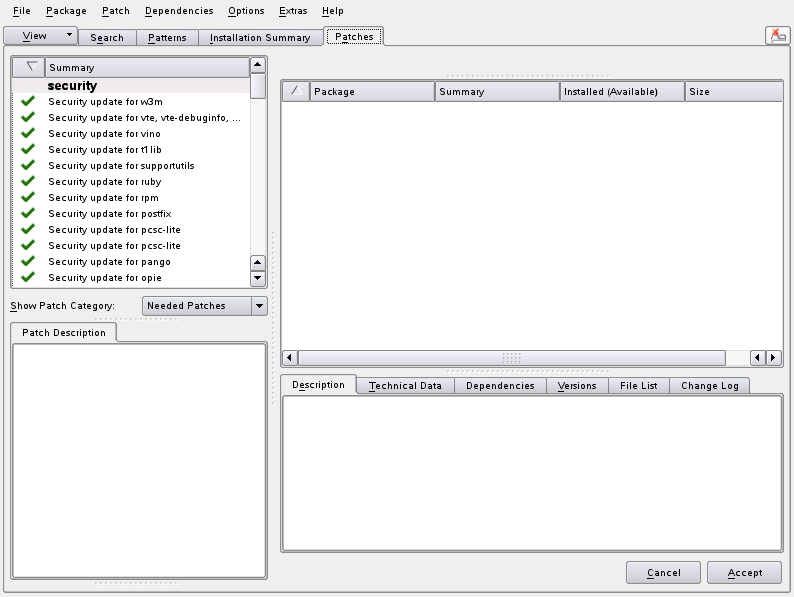 On the Novell Customer Center Configuration configuration page, select all of the following options, then click Next.